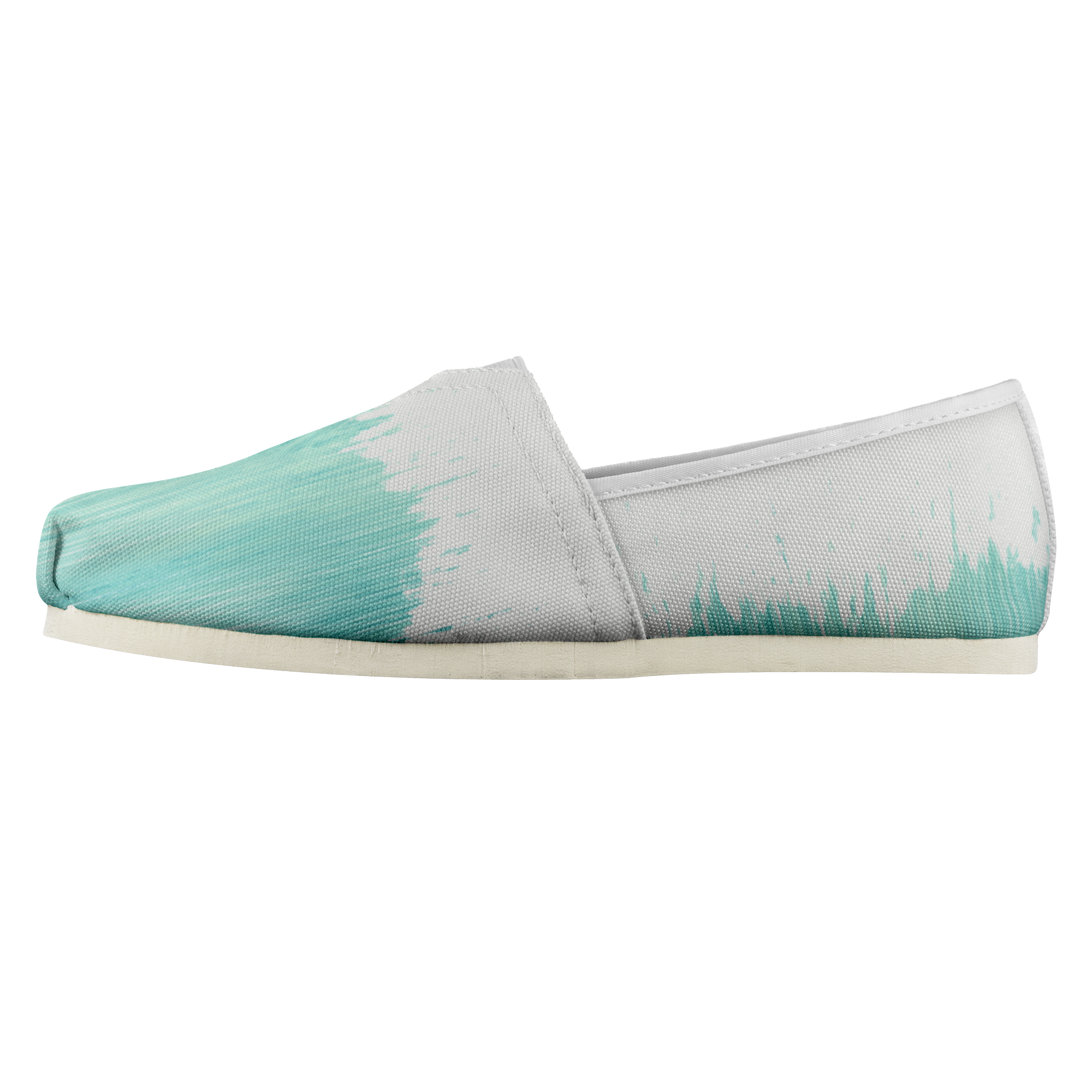 The next step in our footwear lineup is Women’s Casual Shoes. These fashion forward slip on shoes are built with the modern woman in mind. Design a pair that is subtle and can be worn with a multitude of outfits, or create a truly unique set of footwear that will really “WOW” the masses. The Women’s Casual Shoes are broken down into 3 design sections (per shoe). You can design for the front vamp (wrap from toe to mid-section), inner shoe panel, and outer shoe panel. This means the entire shoe is customizable except the accent trim, stretch insert, and sole of the shoe. Take a look at some design examples below which are also the mockup views that come standard within the app.