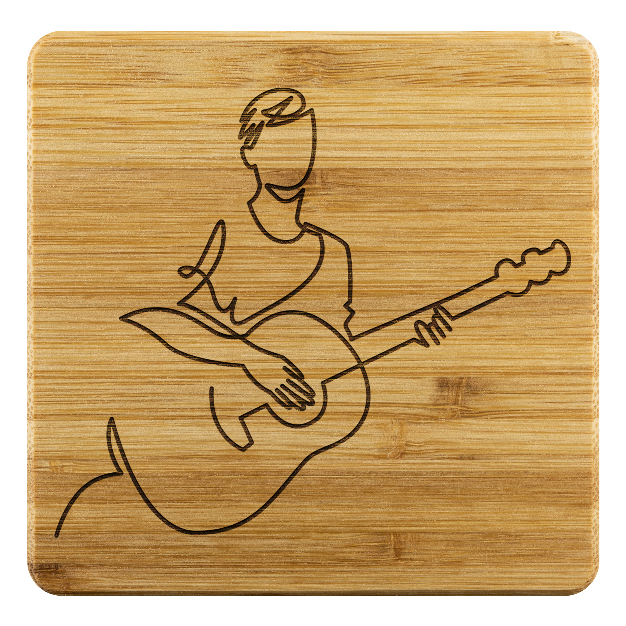 The designs on coasters are NOT printed on to the actual product. The designs are actually laser etched. The laser process consists of a laser etching and burning the design into the wood of the coaster revealing your design in a dark rustic color and at a lower depth from the surface.