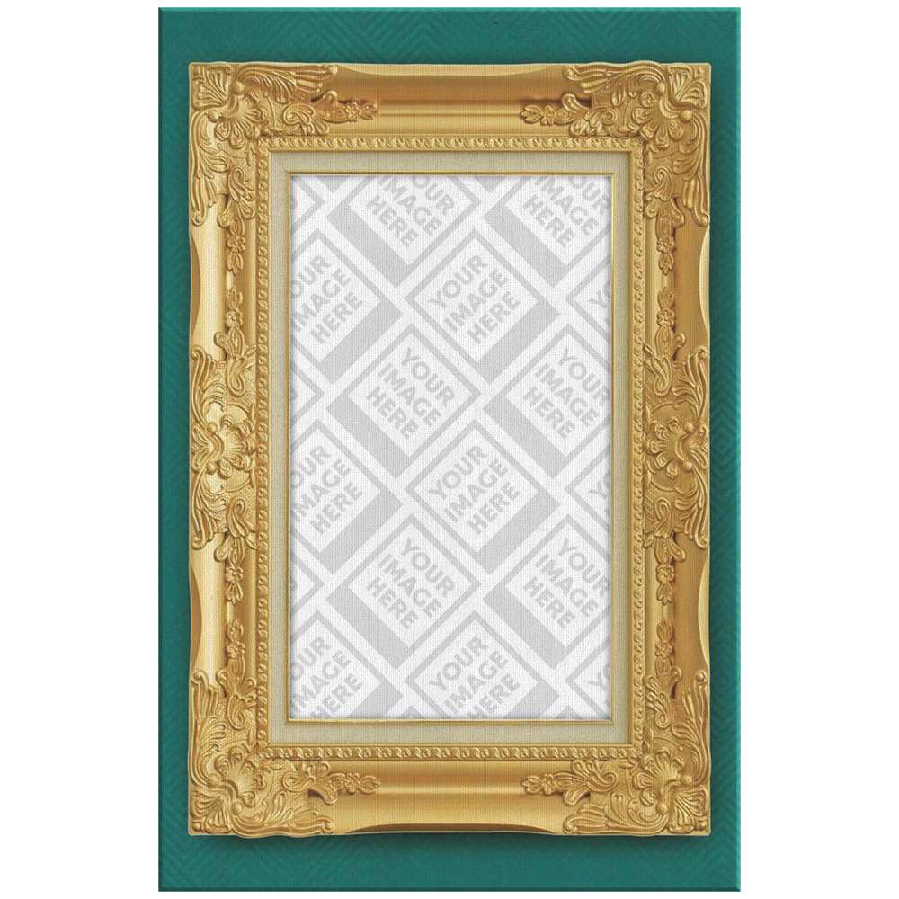 Save your final artwork as a transparent PNG. As previously stated, if you do not have transparency within your design or save as a transparent PNG, your customer’s will not be able to personalize the canvas with their uploaded image. Remove any background layers that obstruct the transparent space you have framed for your customers before saving. Please see the examples below that illustrate proper canvas overlay designs.