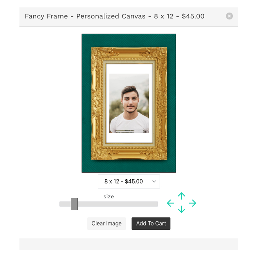 The Personalization Feature allows your customers to have a hand in the design process by giving them the ability upload their own image to the product. We like to use the example of a picture frame to illustrate how the feature works. You will be creating the picture frame and the customer will have the ability to upload their own image that slides behind the frame. The customer will have the ability to scale and move their image to fit the frame however they see fit. Once they are happy with their image placement, they will place their order wherein teelaunch will create a print file with your artwork and the customer’s image composited together.