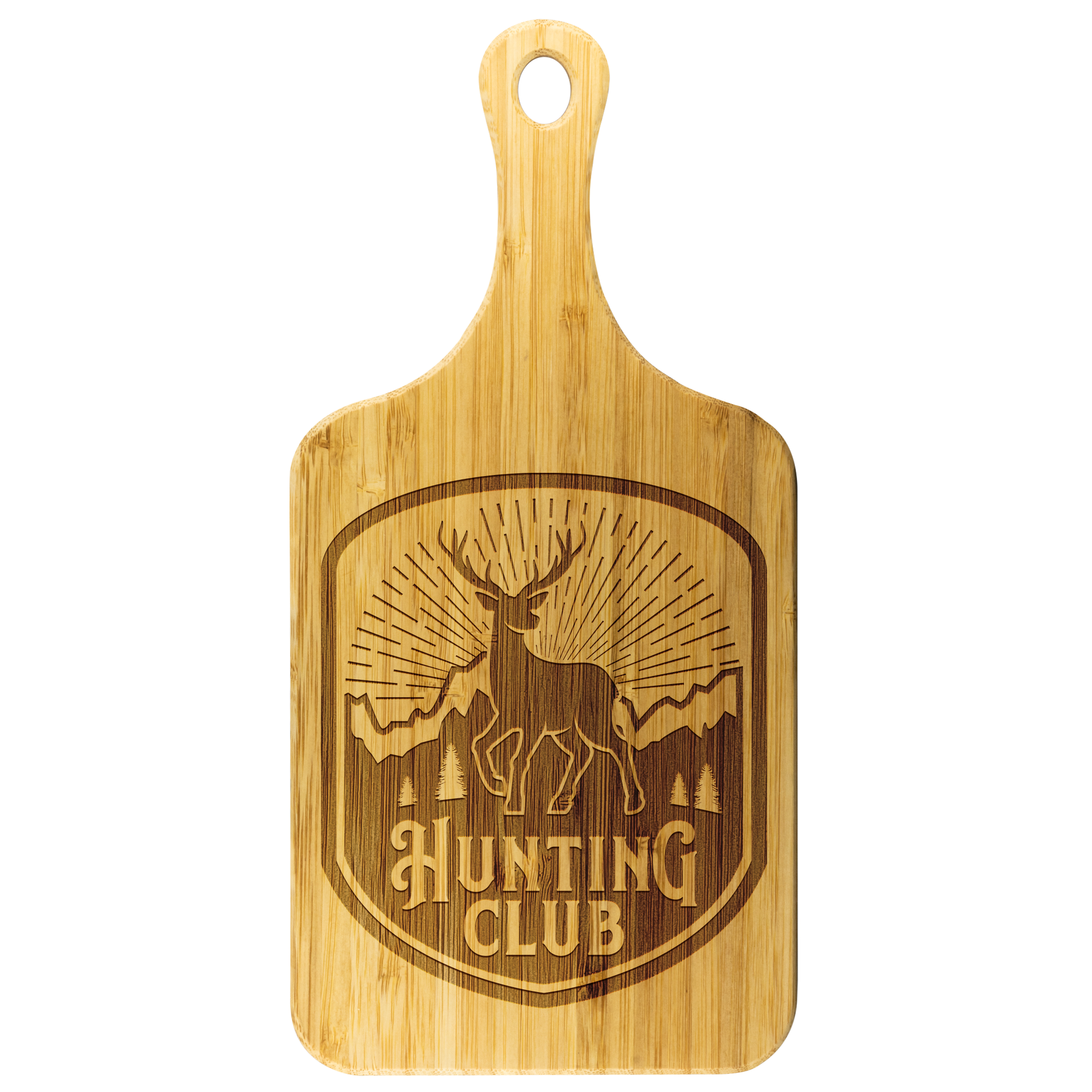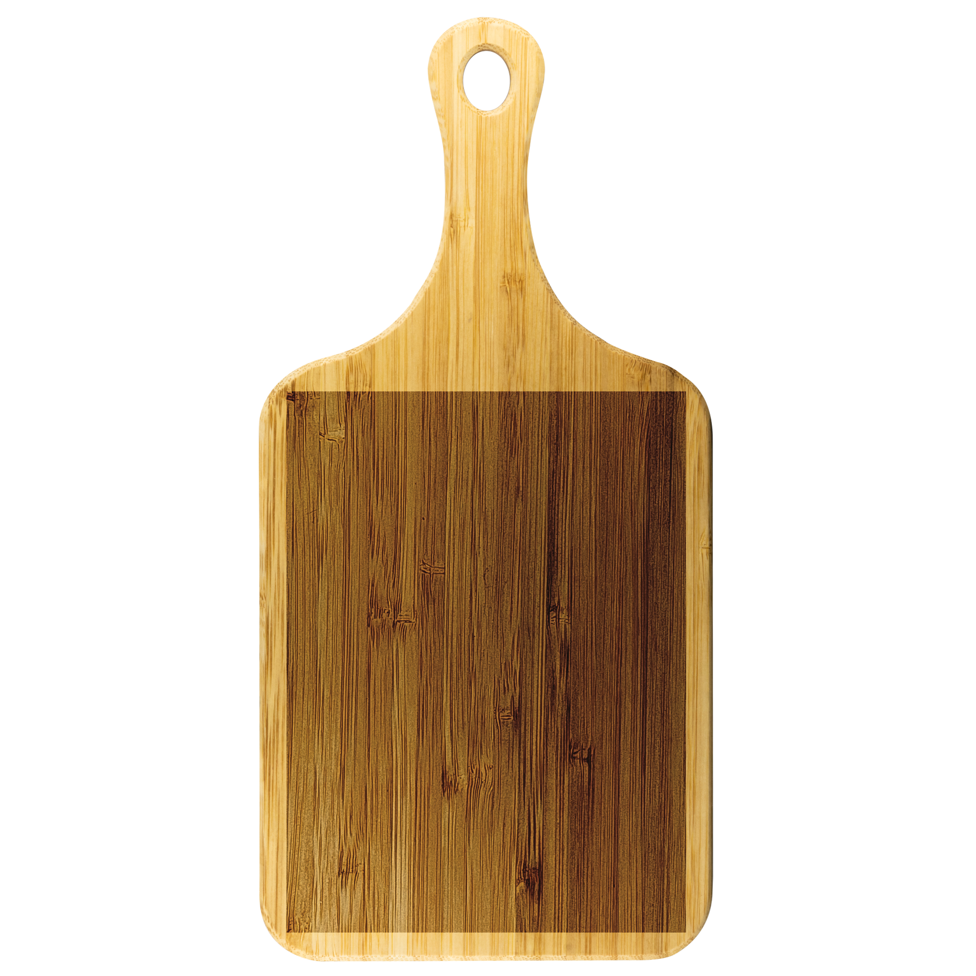 The designs on wood cutting boards are NOT printed on to the actual product. The designs are actually laser etched. The laser process consists of a laser etching and burning the design into the wood of the cutting board revealing your design in a dark rustic color and at a lower depth from the surface.