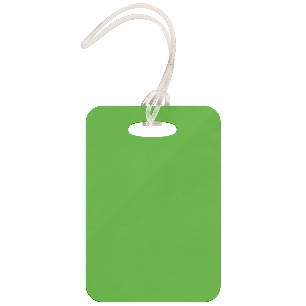 The luggage tag is metal with a white front and back surface. The white areas of the tag are what get printed on. The surface is flat and smooth and will reproduce prints that have a slight glossy effect. The tags are printed through the sublimation process. During the sublimation process, inks are heated to a gaseous state which enables the print to sink into the product. When the temperature drops, the ink returns to a solid state and becomes a part of the product. This process allows for longer lasting and more durable prints.