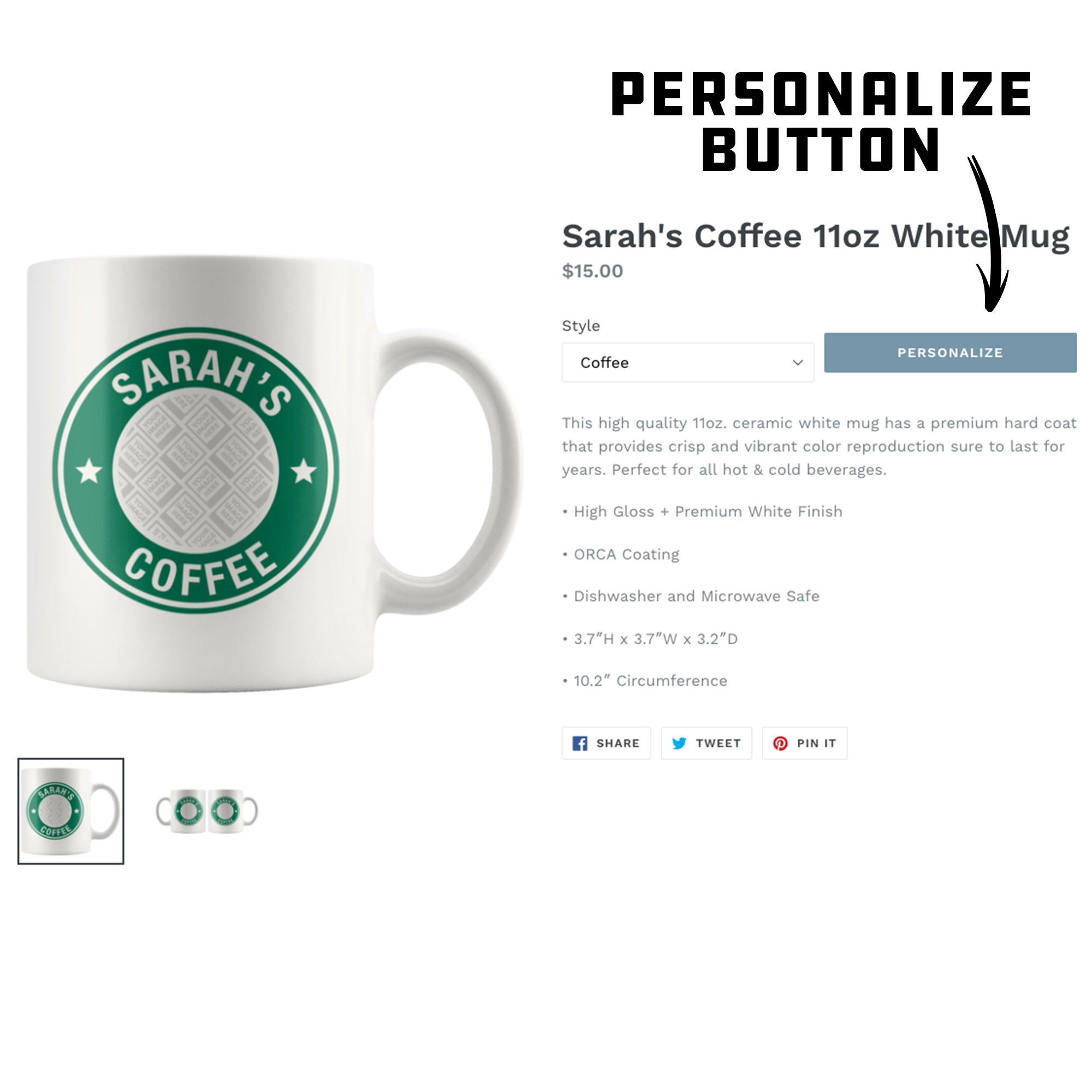 Creating the framework for a personalized mug is quite different from creating a design for the normal standard mugs we offer. It is important that your read through the Best Practices so you have the proper understanding of how to create a mug overlay that works with the teelaunch personalization feature. We will discuss how the personalization feature works, how to utilize/follow the print templates supplied in the app, and offer useful techniques and examples to assist with the design process.