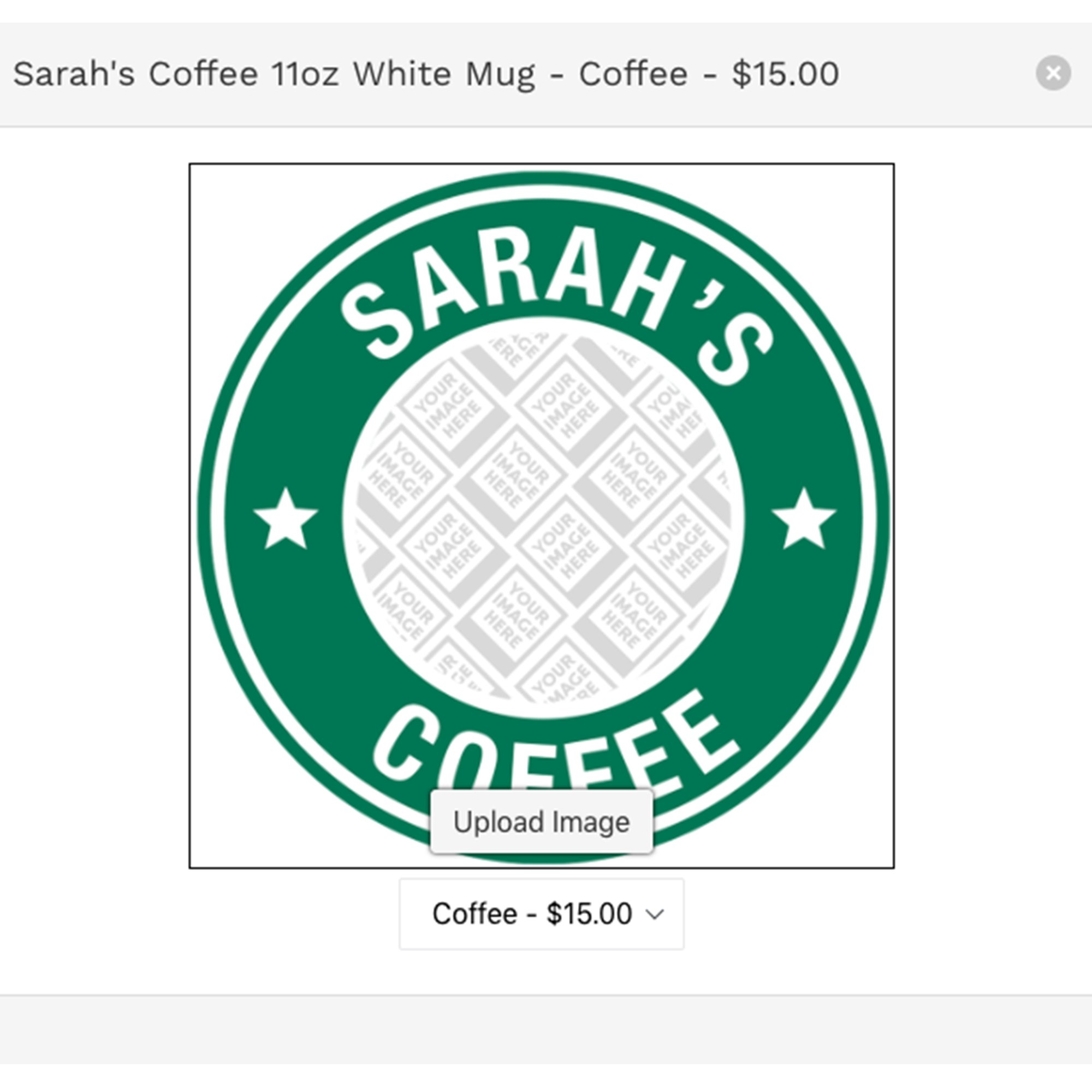The mugs are one of the personalized products that we are also offering the option to leave the design area completely blank. Publishing a mug with no design will allow your customers to take advantage of the entire print area of the mug for their own image. We suggest offering a mug with this option in your store for two reasons – It takes no time or effort to create the product as well as it gives your customer complete control of the design on the final product. If you would like to utilize this product option, simply click the “No Design” button located next to the standard “Upload Image” button. This will take you directly to the publish screen with no additional artwork displayed on the mockup image (only the “Your Image Here” pattern). When your customer personalizes the product, the entire print area will be open for them to place their image.