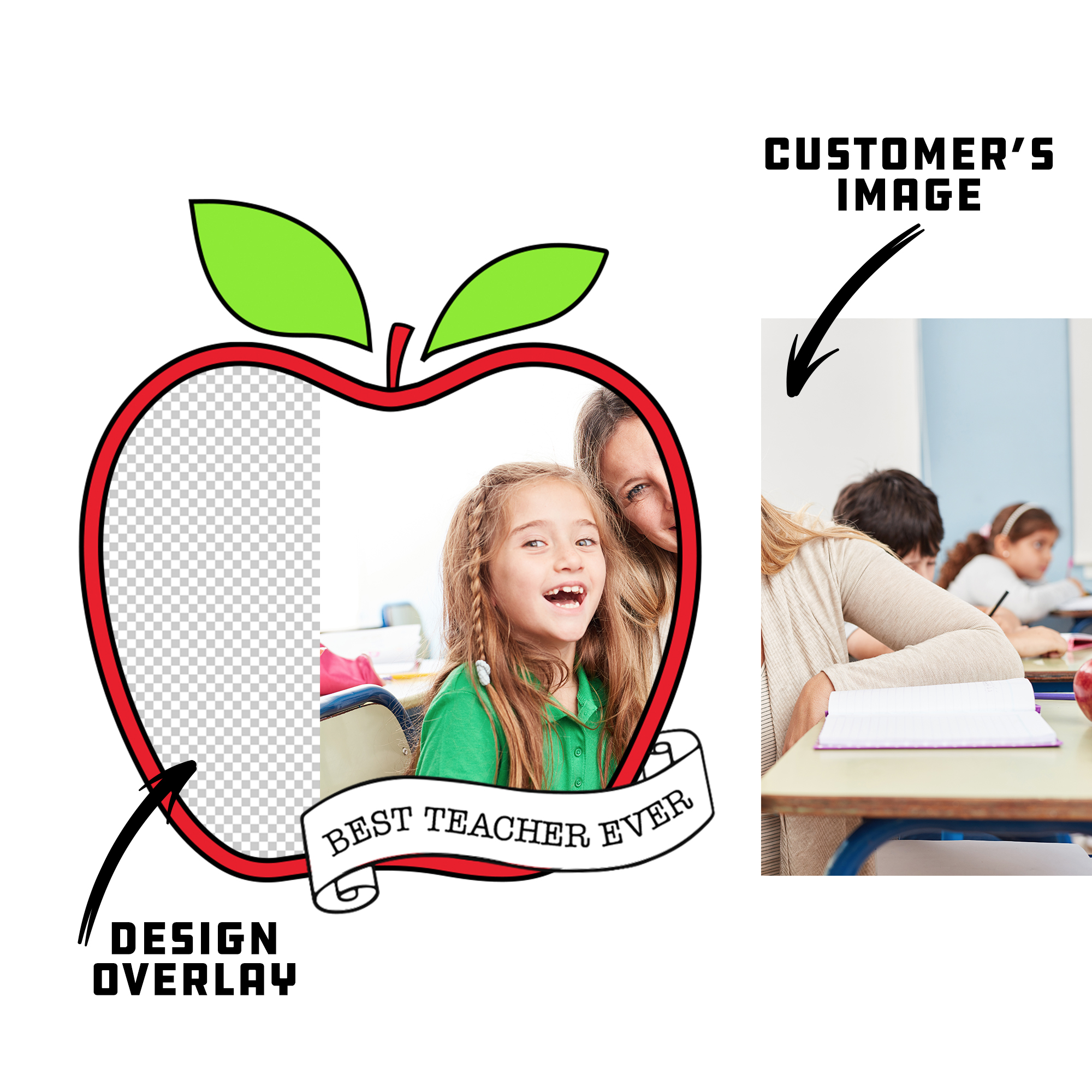 You MUST create artwork that has a portion of transparency for the personalization feature to work properly. The transparent portion of your design is the area where your customer’s image will be placed and show through behind the design you have created. If you do not have transparency within your design that you upload, the design will print without the personalized image from your customer.