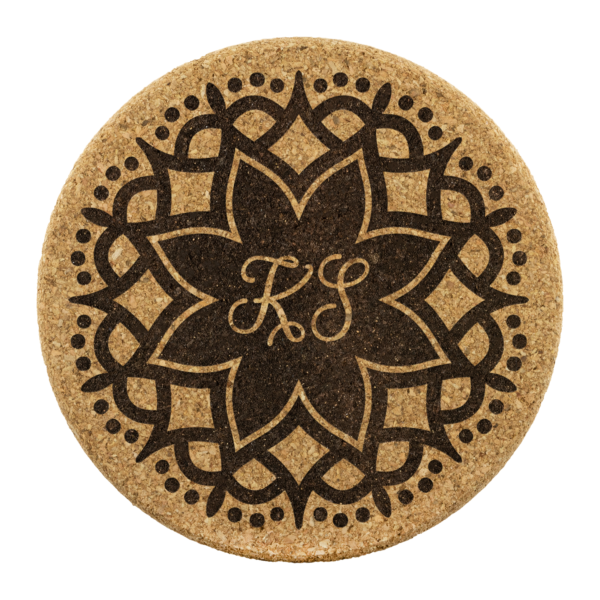 1.) Utilizing Transparency: You must upload a graphic that has transparency within it. If you were to upload a PNG file that has a solid background, you will quickly notice that your mockup file will display a solid box where your design is supposed to be. This is because there is no transparency in your design. If there is no transparency the laser will etch the entire “print” area because it only recognizes where there are pixels in a design and etches the cork that occupies where those pixels reside on the coaster.